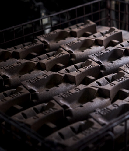 ウレタン硬化を用いた自硬性の製造法で手込めで砂を詰めてつくり、時間を経過させて固まるという技術です。小型から150㎏の大型鋳物にも対応できるため多品種少量生産にも適した造型法です。